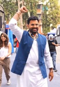 Rohit Sharma New political Look : मुंबई इंडियन्सचा कप्तान रोहित शर्मा सध्या सोशल मीडियावर व्हायरल होतोय. रोहित एका राजकारणी लूकमध्ये दिसत आहे. त्याचा एक व्हिडिओही समोर आला आहे. यात त्याने गोल्डन चष्मा, पांढरा कुर्ता, निळे जॅकेट, गळ्यात चैन, बोटांत असा लूक केला आहे. रोहितचे हे नवे रुप अनेकांना तोंडात बोटे घालायला भाग पडत आहे.